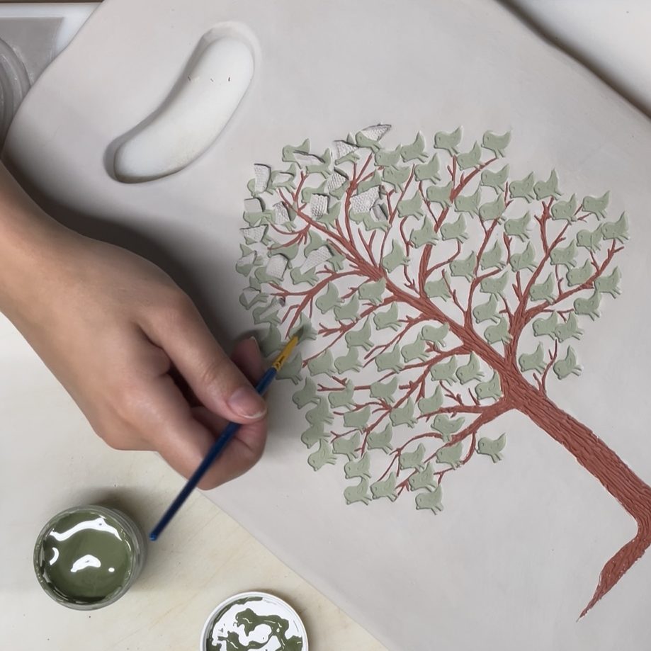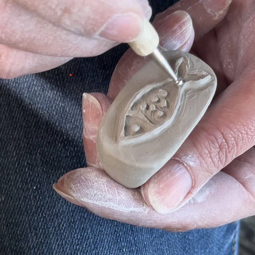 My faith is deeply woven into my work, inspiring every design and detail. I love incorporating hand-painted and hand-carved elements, making each piece truly one-of-a-kind. Whether it’s drawing and carving a pattern by hand or creating my own bisque stamps for texture, I pour myself into the art and craftsmanship of every item I make.